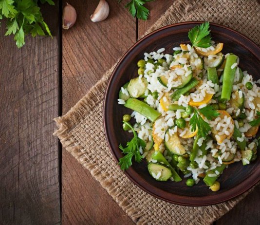 Paella de Arroz Integral con Garbanzos